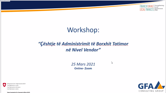 Seminari  për “Çështje të rëndësishme të Administrimit të Borxhit Tatimor në Nivel Vendor” organizuar nga Projekti “Financat Lokale” me 25 Mars, mblodhi se bashku 39 specialistë të të ardhurave vendore të Bashkive Tiranë, Korçë, Vlorë, Shkodër, Durrës, Tropojë, Peshkopi, Lushnjë, Kavajë, Berat, Dimal, Devoll, Gramsh, Përmet  e Gjirokastër. Me fokus në ndryshimet më të fundit ligjore dhe hapat procedurale për tu ndjekur për mbledhjen e detyrimeve të prapambetura, në aktivitet u diskutuan çështje të rëndësishme që lidhen me analizën e rriskut në mbledhjen e borxhit tatimor, rolin e përgjegjësite e agjentit tatimor në mbledhjen e detyrimeve si dhe nevojën për sigurimin e uniformitetit minimal të standarteve procedurale në nivel vendor.  Për të fuqizuar proceset dhe aftësitë teknike të administratës tatimore vendore në administrimin e borxhit tatimor, ekipi i Projektit ka përgatitur një model Manuali/rregullore pune për këtë funksion i cli duhet të adoptohet në vijim si pjesë e rregulloreve të brëndshme të bashkive.